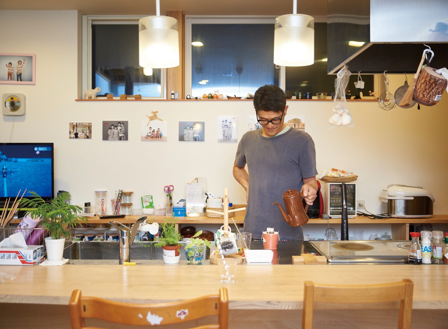 「木をふんだんに使った家に住みたいと思って、いろいろなビルダーさんの内覧会に行きました」と語るのは妻のSさん。Sさんの実家の小屋部分を住宅に建て替える計画から家づくりがスタートした。Tさんの希望は部屋のなかをできるだけ区切らず、広々使えるようにすること。将来的には母屋の一部も子どもたちの個室として活用する計画で、各フロアはほぼワンルームに近い状態になった。さらに1階の薪ストーブの暖気を2階にも循環させるため、吹き抜けになってもいる。そのため、家のどこにいてもお互いの存在を感じられる家になった。