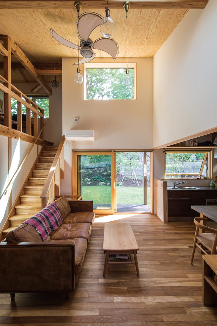 「家は道具」と語る今井さんは、100坪超の敷地に、居住スペース30坪弱のコンパクトな家を提案。とはいえ、各部屋の広さにゆとりがあること、吹き抜けの高さなどにより、狭さはまったく感じられず、I邸にはむしろ必要十分な空間特有の心地よさが感じられる。Iさんは「身の丈や希望のライフスタイルにぴったり合う家を提案していただけたな、と満足しています」と話す。