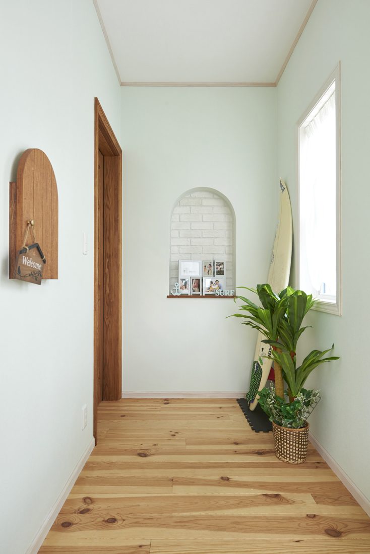 結婚と同時に家づくりを考え始めたというYさん。サーフィン仲間でもある会社の先輩が、インデュアホームでサーファーズハウスを建てたのを見学して、好印象を持ったのが最初の出会いだった。