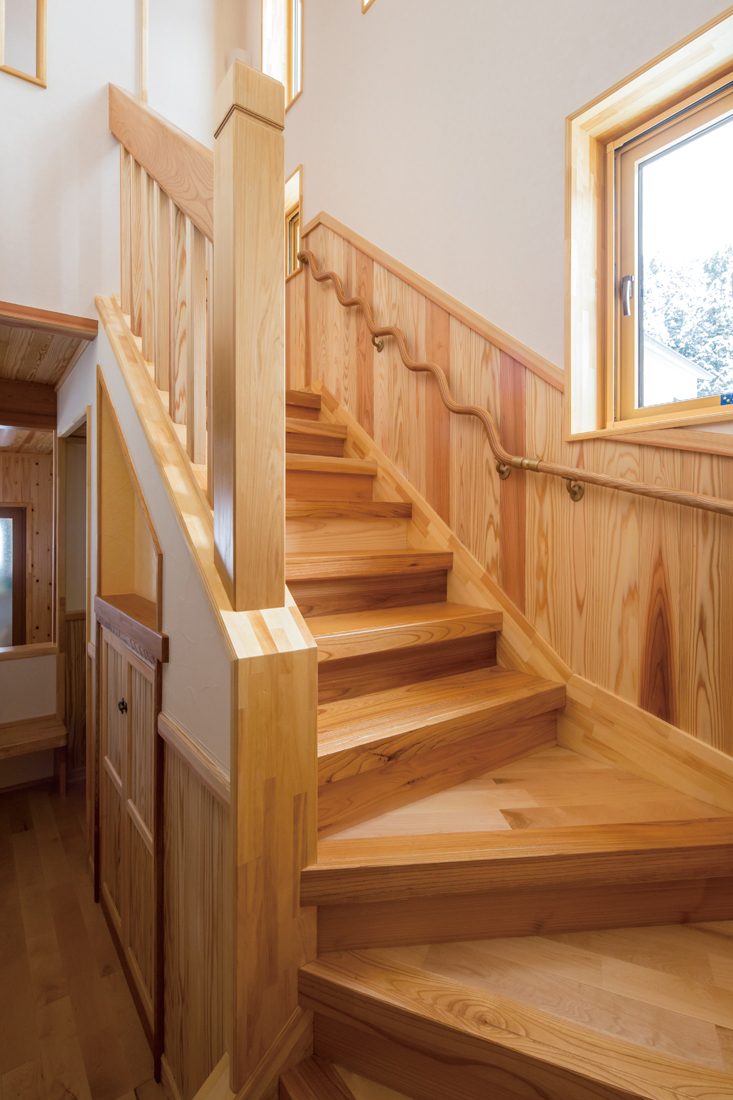 さらに秋田県産材は自社で大工さんが加工することにより、無駄なく活用され、コスト削減を可能にしている。「お子さんのアレルギーなどを心配されている方や、自然素材を使って、地元の工務店で建てたいという方に、選んでいたくことが多いですね。」と話すのは代表の阿部さん。本誌でも何度か取り上げたことのある新木造住宅技術研究協議会(新住協)の会員でもあり、断熱性能にもこだわりがある。「冬が長い地域ですので、暖房器具1台で全館暖房が可能な仕組みを考えるようにしています」と阿部さん。 実家でも長くだるまストーブを使用してきたというAさんは、新居にも薪ストーブを導入したが「これ一台で家じゅう暖かいし、燃焼効率がいいストーブを提案していただいたので、薪が少なくて済んでいて驚いています」と暮らしの実感を語る。