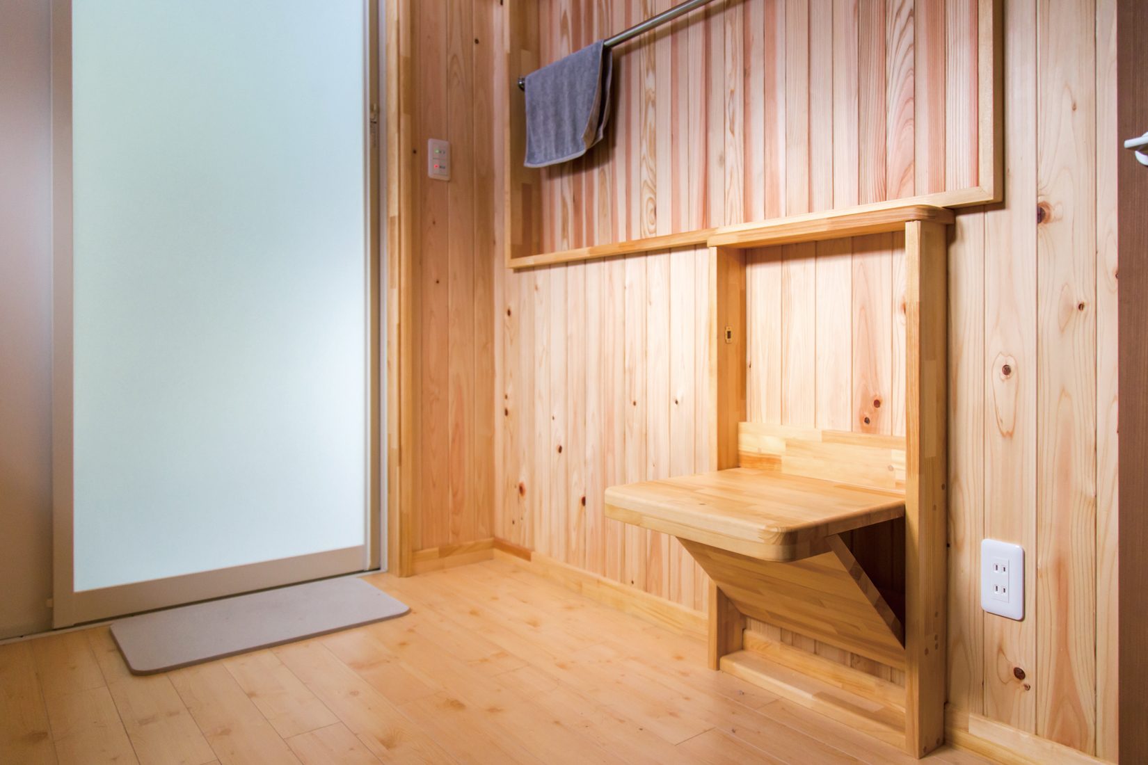 内壁材塗り(ケンコート)、木材(ケヤキ、ヒノキ)