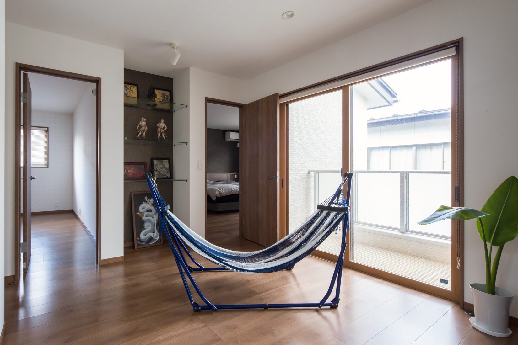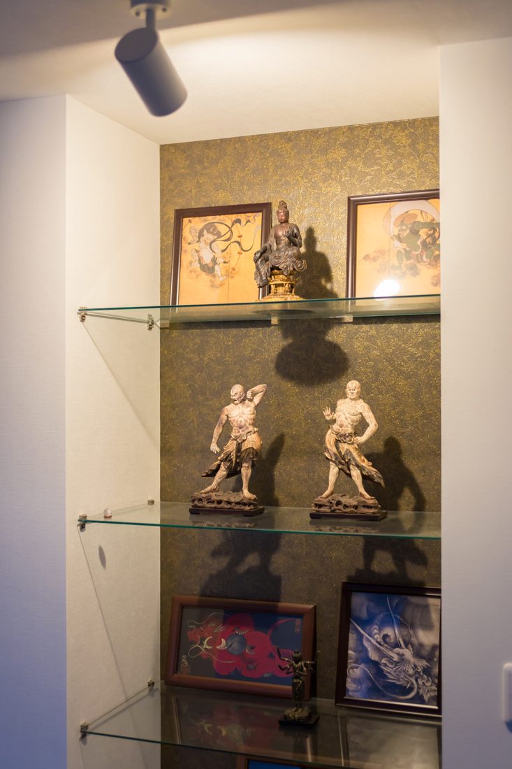 大胆な広さとも見えるスキップフロアは、扉などをつけずに空間の役割を分けるのにぴったりだった。せっかくの大空間を生かすために、キッチンはオープンのアイランドキッチンを採用。当初はカウンターでリビングとダイニングを仕切る案もあったそうだが、回遊性と開放感に重点を置き、今のプランになった。中庭は季節のいい時期には外で食事をとったり、お酒を嗜んだりするためのプライベートスペースとして活用しているという。