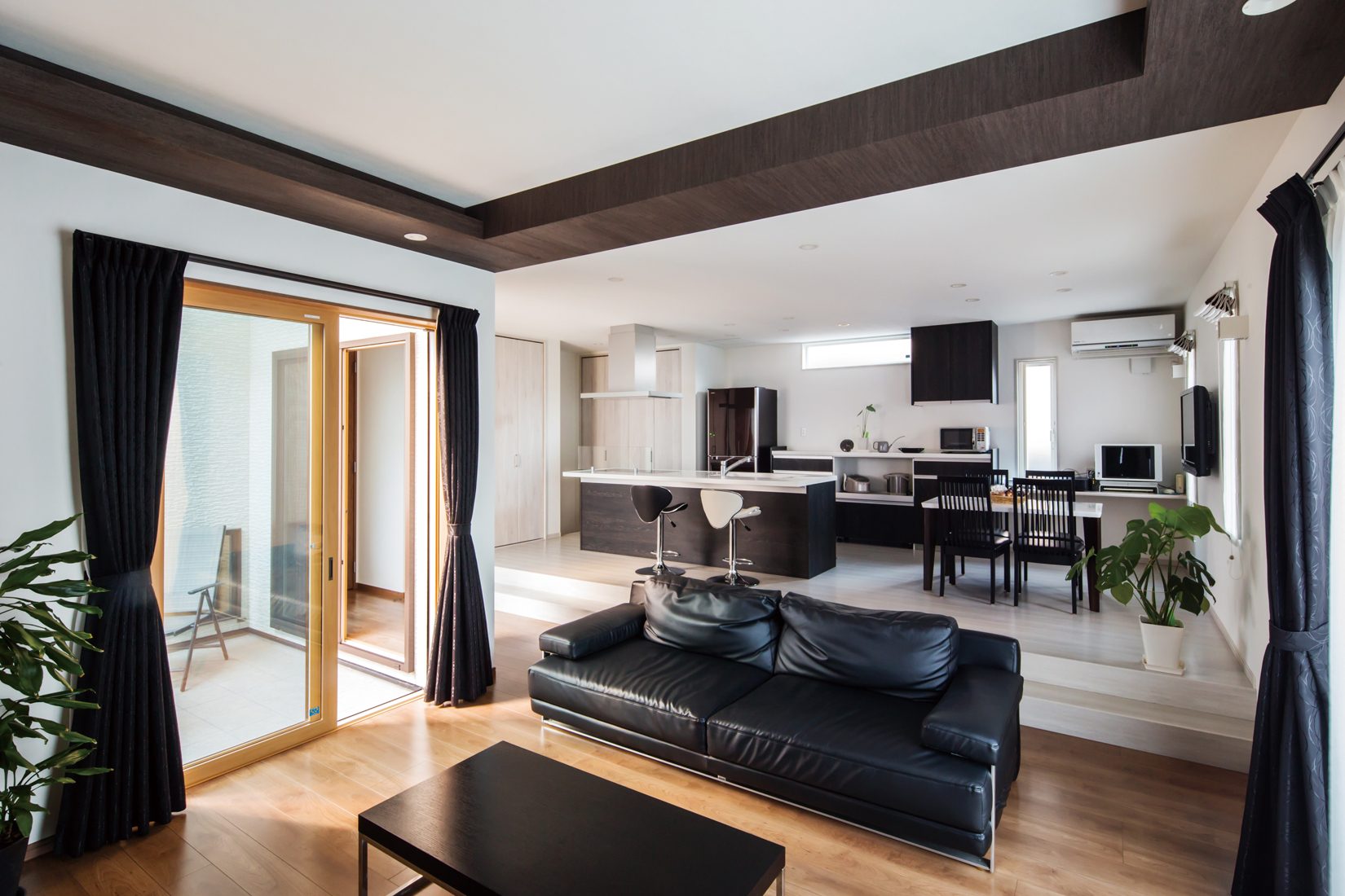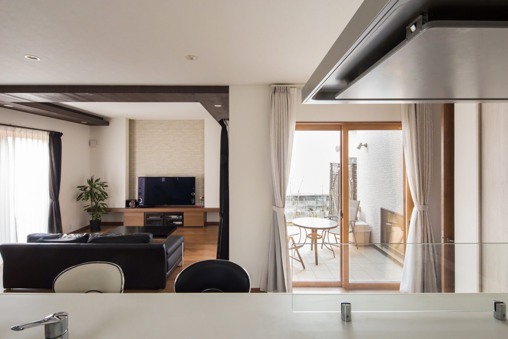 46平方メートル(約28畳)もの広々としたLDKと、中庭が印象的なS邸。「とにかく柱で仕切られない大空間がほしい、というのが私の要望でした」と語るのは妻のMさん。テクノホーム秋田を家づくりのパートナーに選んだ大きな理由も「柱がなくても耐震性に問題がない工法を採用していることと、こちらの希望をしっかり聞いてくれそうだというところでした(Mさん)」と語る。Sさんも「東日本大震災を体験した後の家づくりだったので、一軒ずつ構造計算を行い、耐震性能証明書を出すというサービスを実施するなど耐震性に自信を持っているということは決め手になりました」