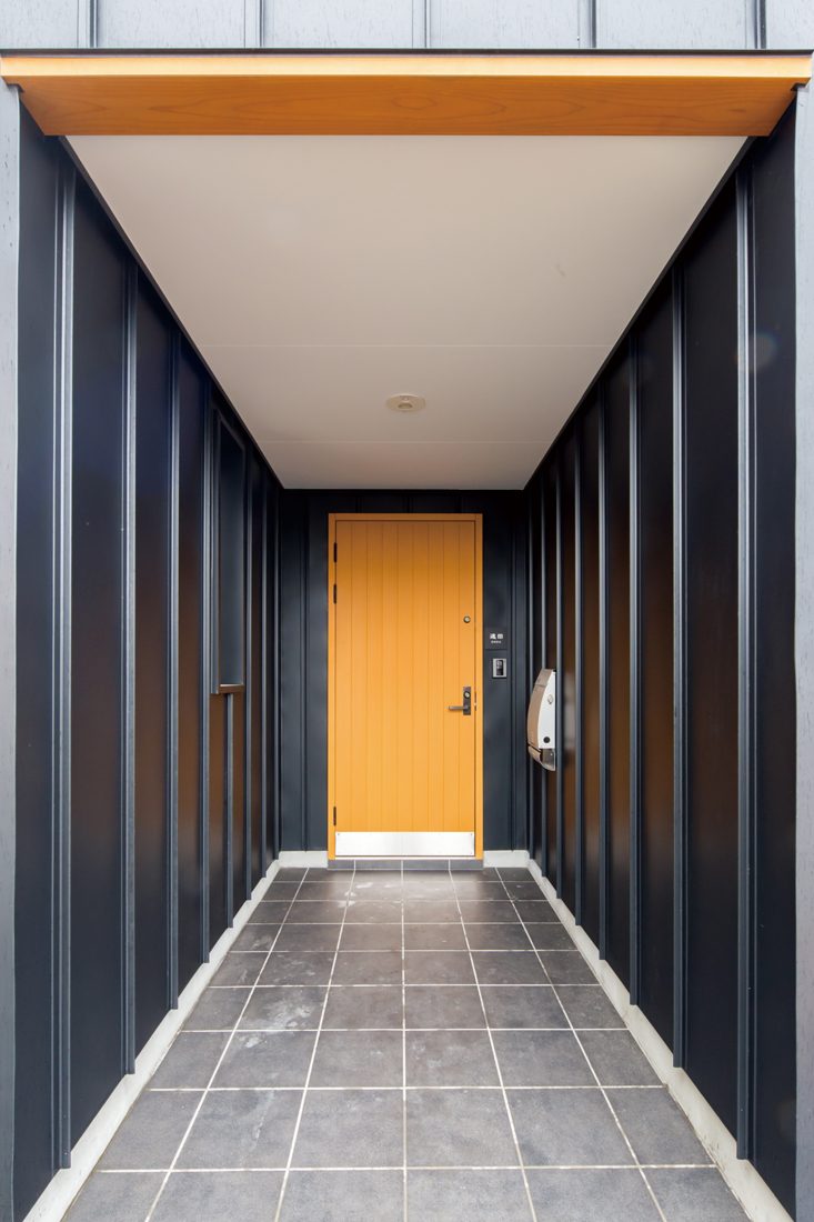 「開放的で子どもが広々と遊べるように(Eさん)」と玄関も含めた1階全体がワンフロアとして設計されたE邸。奥行きのあるポーチを抜け、ドアを開けると広い土間を伴った玄関になっている。